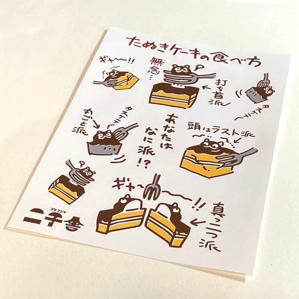 人気柄「たぬきケーキの食べ方」がシールになりました!